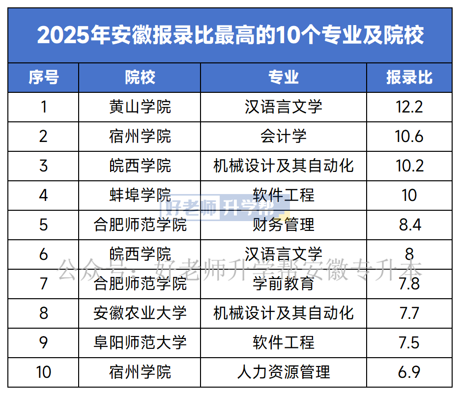 今天,小編就通過報錄比這一關鍵數(shù)據,帶同學們一覽25年安徽專升本各院校專業(yè)上岸難度!