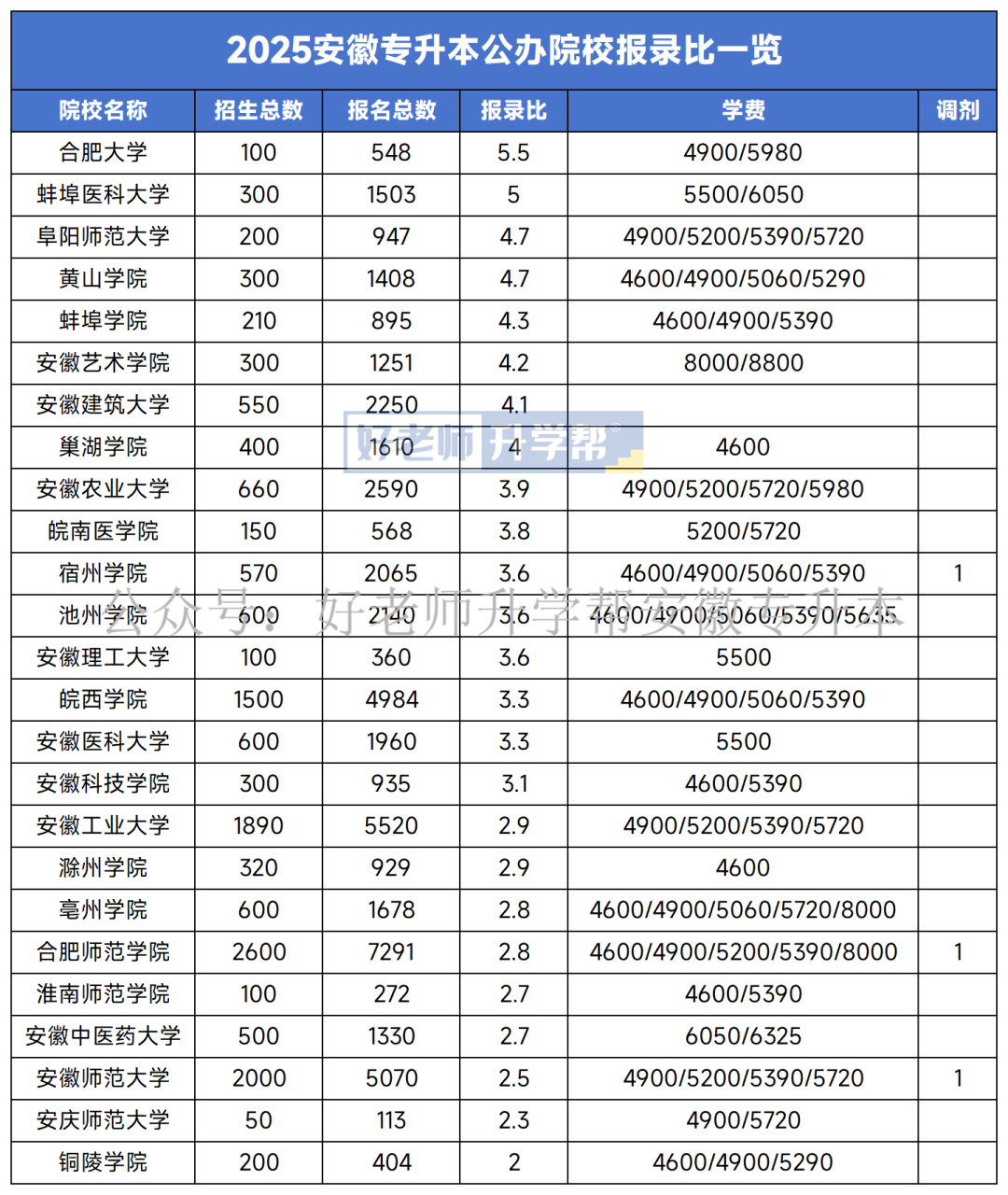 安徽專升本各院校專業(yè)上岸難度一覽!
