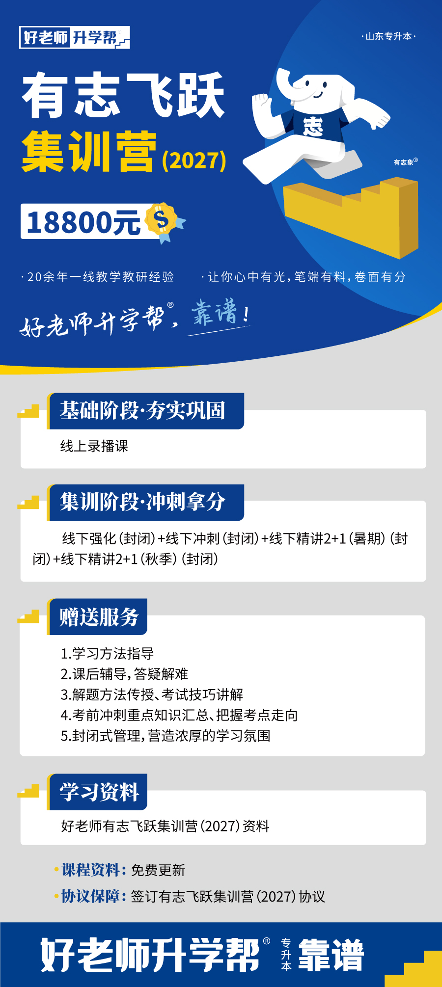 有志飛躍集訓(xùn)營(yíng)B¥18800.00 適用對(duì)象:山東地區(qū)在校大專生、統(tǒng)招專升本考生
