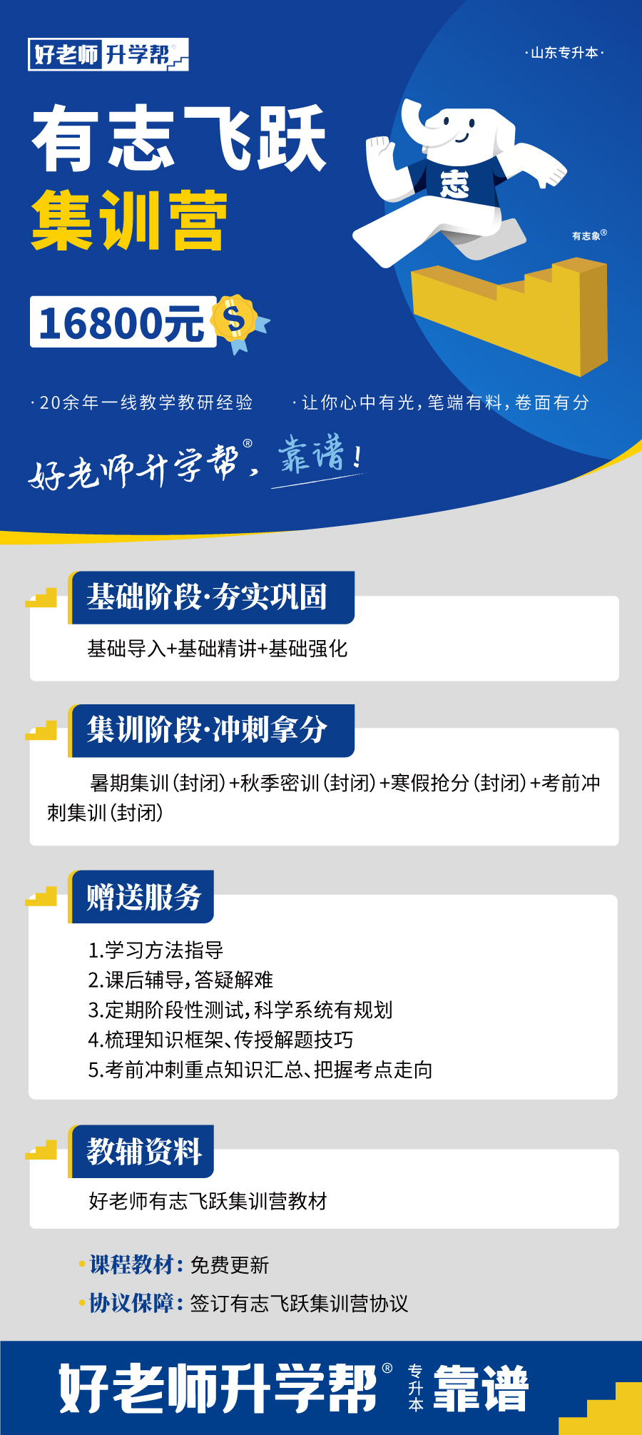 有志飛躍集訓營¥16800.00 適用對象:山東地區(qū)在校大專生、統(tǒng)招專升本考生