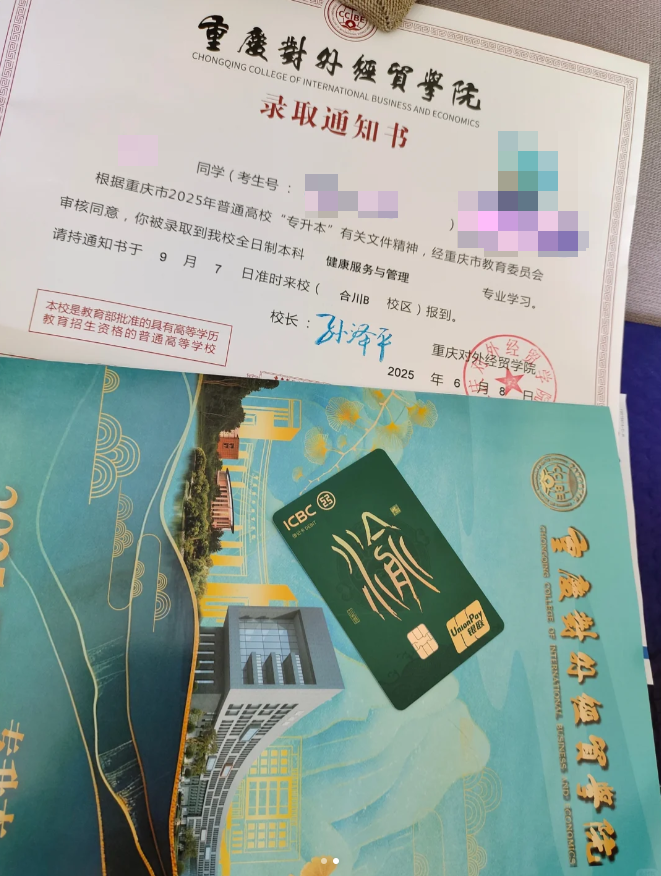 近期各院校都在陸續(xù)發(fā)錄取通知書了,大家注意一下班級群以及輔導員的消息哦目前已經(jīng)看到重慶財經(jīng)學院、重慶移通學院、重慶對外經(jīng)貿(mào)學院、重慶郵電大學、重慶中醫(yī)藥學院、重慶機電職業(yè)技術大學、重慶電子科技職業(yè)大學、重慶醫(yī)科大學......已經(jīng)有同學收到了。在高興的同時當然也不能忘記要仔細閱讀里面的入學須知,按照規(guī)定時間去報到,錄取通知書也要妥善保管好,因為是開學報到的重要憑證!那么關于我們的錄取通知書還有那些用途呢?今天就給大家嘮一嘮。錄取通知書中一般會告知報到時間、地點,還有所需物品、相關證明等。在收到錄取通知書的時候,需要仔細查閱清楚,以免報到當天出現(xiàn)不必要的麻煩。有一些學校會在錄取通知書中放入校園卡或相關憑證等等,方便學生入校后辦理各類手續(xù)。如果有缺少部分物品的情況,請及時打電話向?qū)W校反應。部分專升本院校要求學生到當?shù)卣猩k或教育局領取考生個人檔案材料并在開學后帶至學校。這種時候錄取通知書就顯得尤其重要,因為它是你領取個人檔案的憑證。一般來說,憑借錄取通知書和身份證到各大車站購票,這時候票價是有優(yōu)惠的,大多是半價,有些是打折。要注意的是:你享受的火車票優(yōu)惠區(qū)間只能是家庭所在地與學校所在地之間,超出該范圍的不能享受優(yōu)惠政策。另外,憑錄取通知書只能購買一次學生票,并且只能自己購買,不能幫其他人購買。等正式注冊學籍后,就可以憑學生證享受購票優(yōu)惠啦!憑借錄取通知書,學生還可在一些地方獲得優(yōu)惠和福利,很多商家會針對新生舉辦優(yōu)惠活動。比如手機有大學生暑期優(yōu)惠。此外,還有不少景區(qū)會對新生購票優(yōu)惠甚至免費噢~部分同學可能需要辦理生源地助學貸款,這也是需要用到錄取通知書的,憑錄取通知書和學校的“家庭經(jīng)濟困難學生認定申請表”向家庭所在地縣(市、區(qū))教育局學生資助管理中心提出生源地信用助學貸款申請。如果有需要辦理助學貸款,但是學校不發(fā)錄取通知書或者發(fā)得晚的同學,可以找學校開具相關證明去辦理。