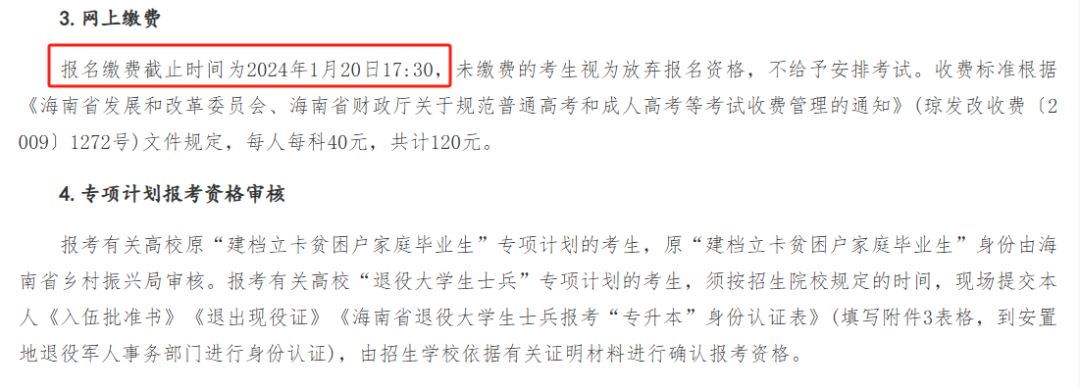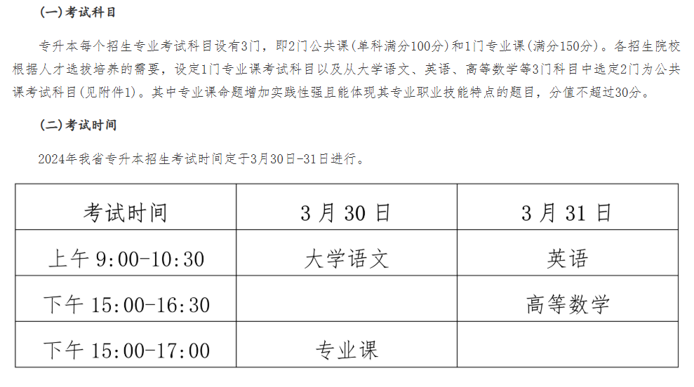 《海南省教育廳關(guān)于做好2024年我省普通高等學校專升本考試招生工作的通知》重點內(nèi)容節(jié)選: