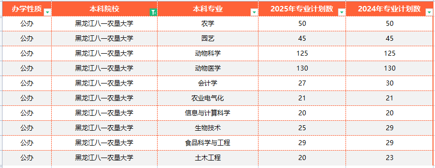 2024-2025年黑龍江八一農(nóng)墾大學(xué)專升本招生計劃增減情況