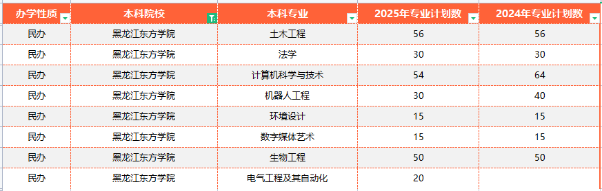 2024-2025年黑龍江東方學院專升本招生計劃增減情況