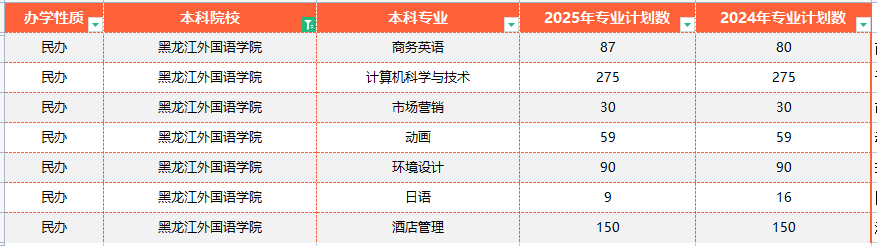 2024-2025年黑龍江外國語學院專升本招生計劃增減情況