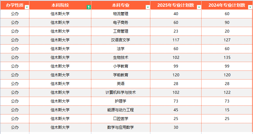 2024-2025年佳木斯大學(xué)專升本招生計劃增減情況