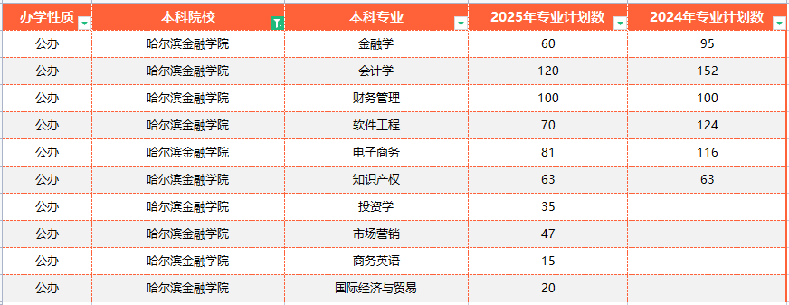 2024-2025年哈爾濱金融學(xué)院專升本招生計(jì)劃增減情況
