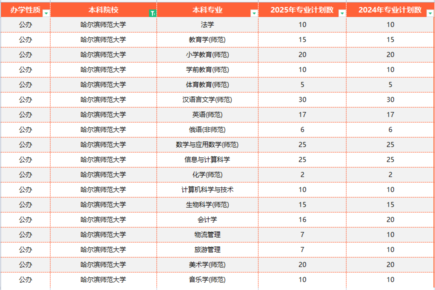 2024-2025年哈爾濱師范大學(xué)專升本招生計(jì)劃增減情況